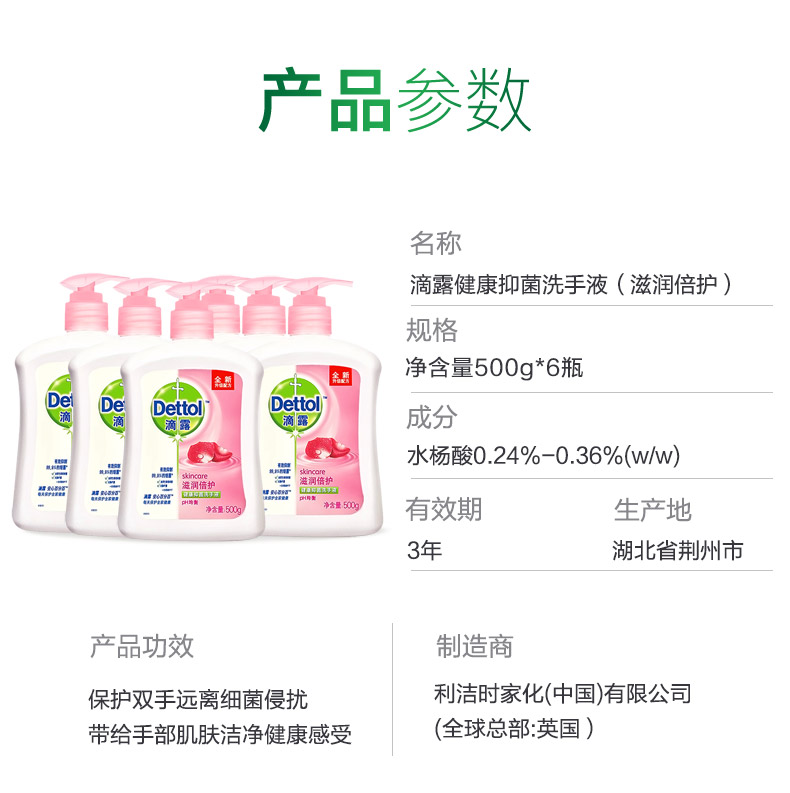 滴露Dettol健康抑菌洗手液滋润倍护500g*6瓶