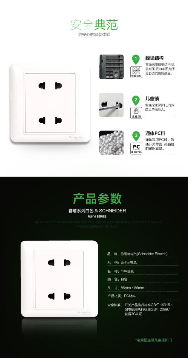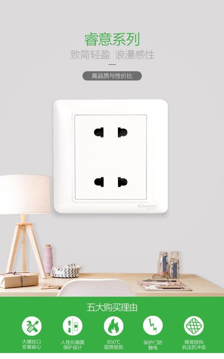 Schneider/施耐德的工业插头插座施耐德电气开关插座10A四孔插座双联二极带保护门电源插座