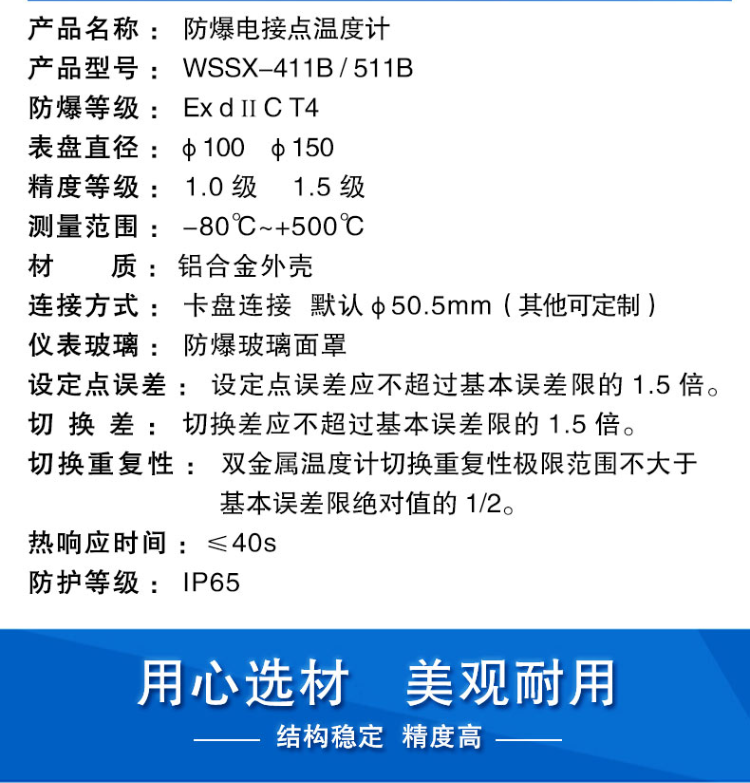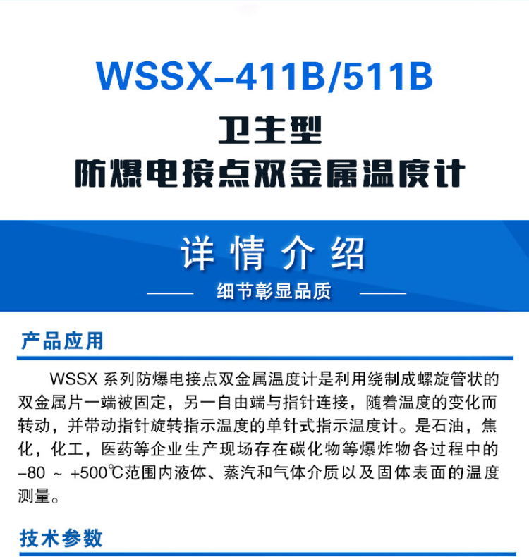 艾逊订货号:D1003532 原始型号:防爆电接点双金属温度计WSSX-411B 品牌:大成仪表 品牌所属地: