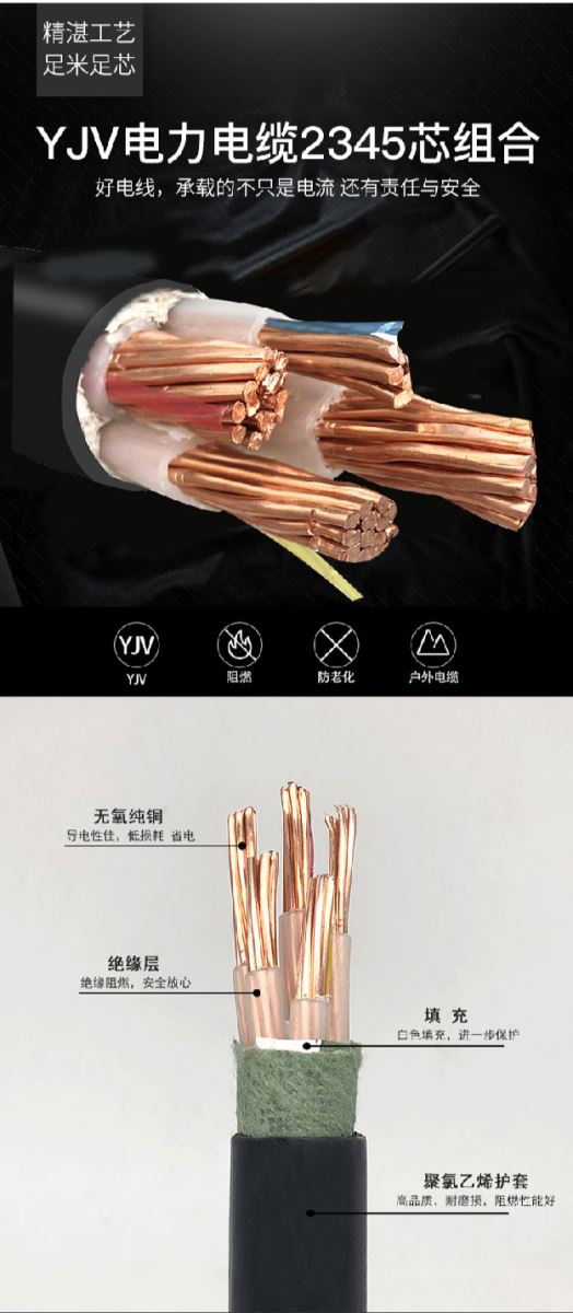 商品名称:迎科珠江电力电缆国标yjv铜芯电缆线2 3 4 5芯10 16 25 35平方户外线 YJV4*2.5/米 .商品编号:10026448208457