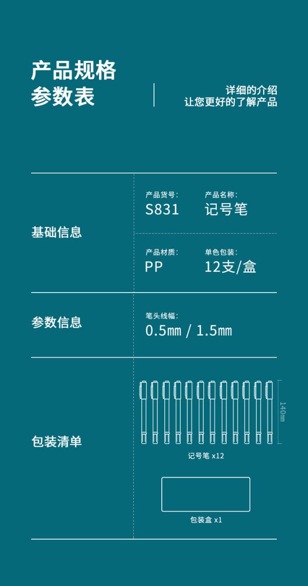 deli/得力的刀柄得力(deli)S831细杆双头多用物流油性记号笔黑色12支/盒