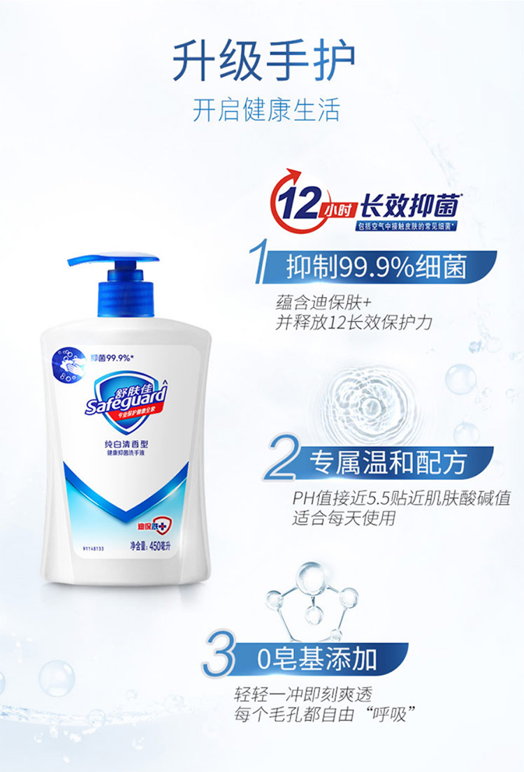 艾逊订货号:H1000533 原始型号:450ML 品牌:SAFEGUARD/舒肤佳 品牌所属地:中国