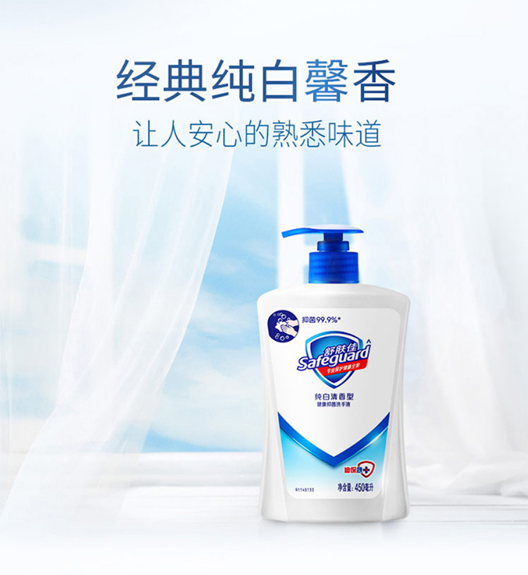 SAFEGUARD/舒肤佳的洗手液舒肤佳纯白清香型健康抑菌洗手液450ML