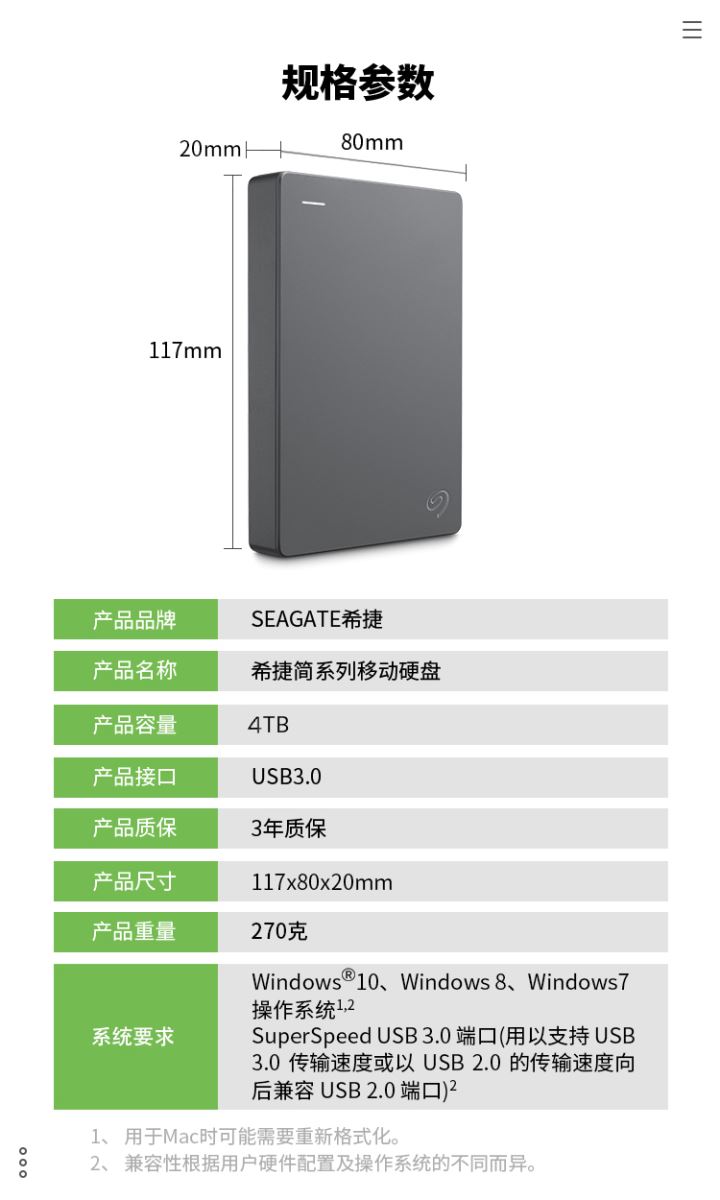 艾逊订货号:H1000534 原始型号:4TB USB3.0 2.5英寸 品牌:希捷 品牌所属地:中国