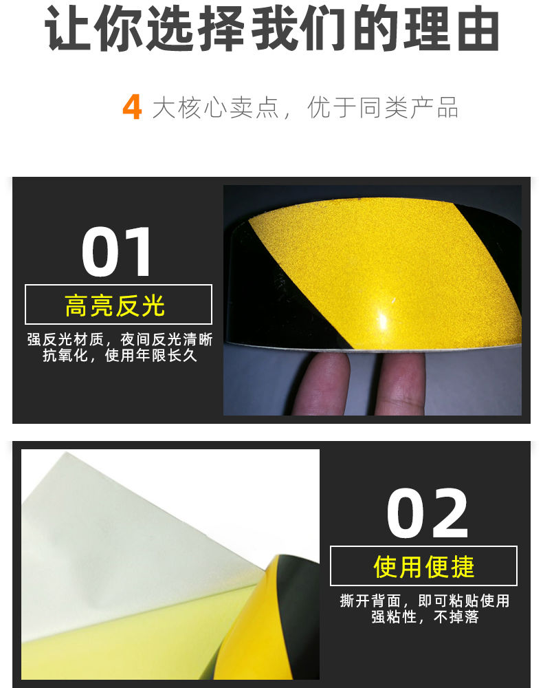 3M的地面标识和警示胶带反光黑黄警示胶带(标示带)10cm*45.7M