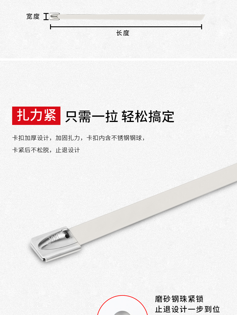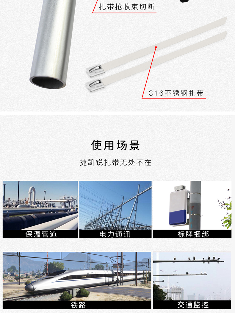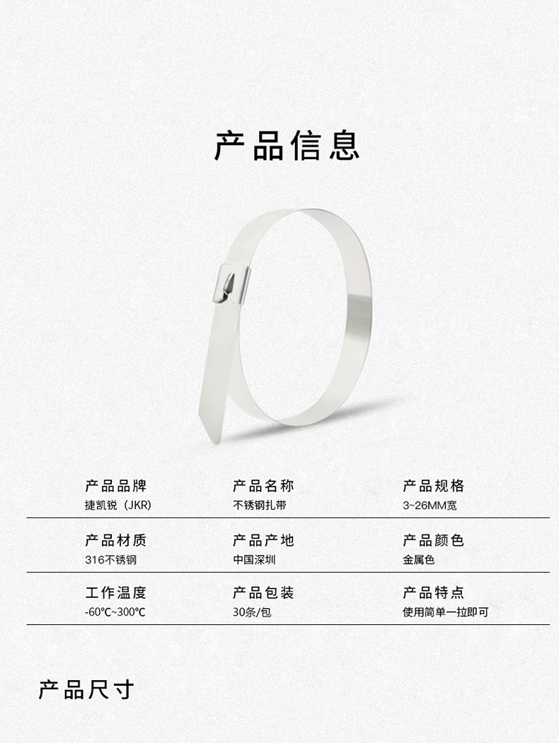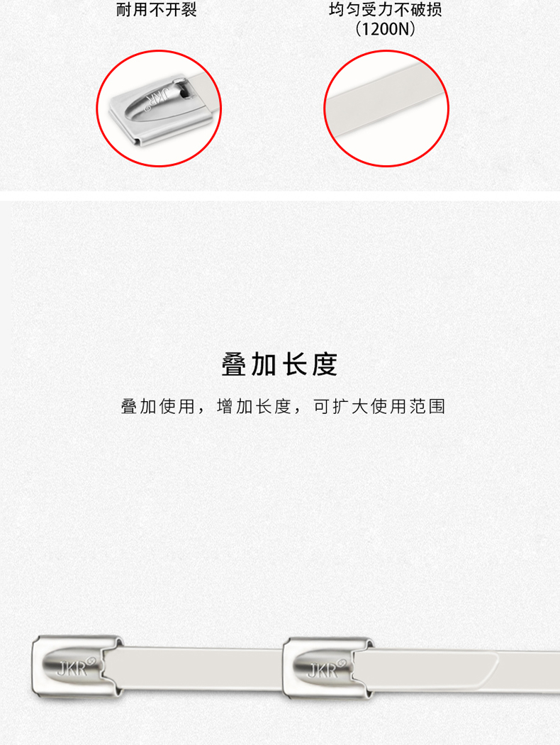 捷凯锐的封包带JKR/捷凯锐304不锈钢自锁扎带JKR-BCT4502504.6×250mm1条最小起订量:100