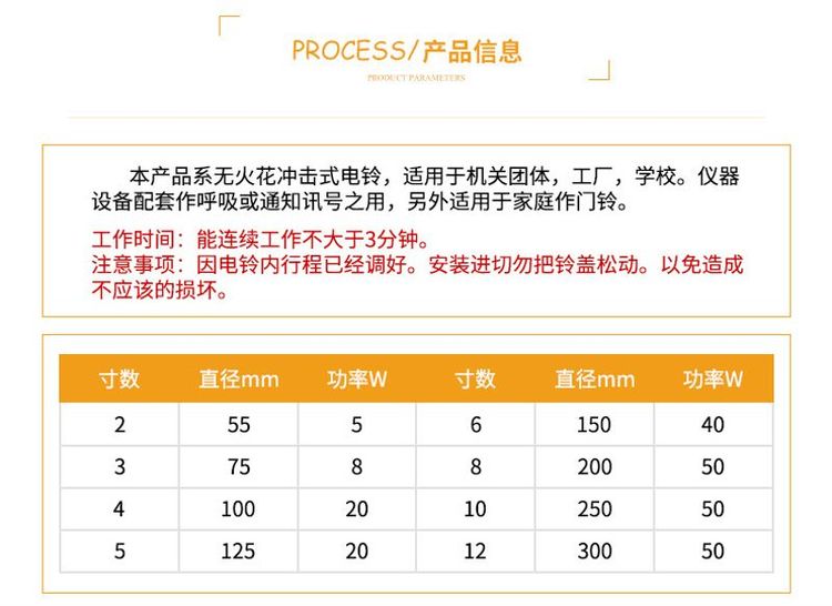 无火花冲击式电铃 UC4-200mm