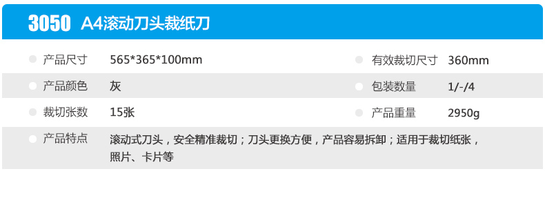 其它手用工具;规格型号:A4纸;大#;材质:组合件;KW-TRIO/可得优 滚动裁纸刀 3050 A4 德国工艺 1台