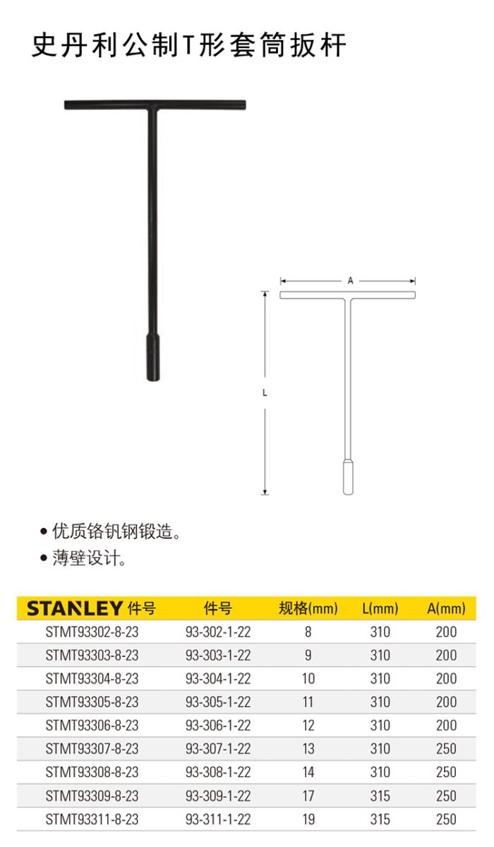 STANLEY/史丹利的套筒及配件T形套筒扳杆14mmSTMT93308-8-23