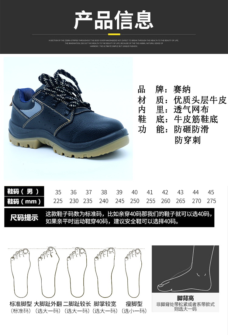 BATA SABRE LOW CUT防砸防刺穿黑色安全鞋,715-60928-35 |
