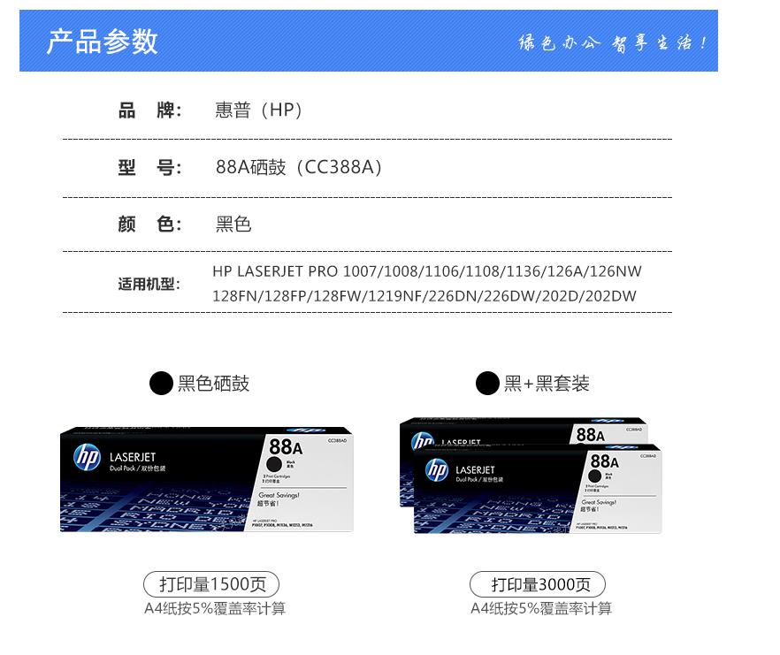 艾逊订货号:H1001488 原始型号: 88A(CC388A) 黑色 品牌:HP/惠普 品牌所属地:中国