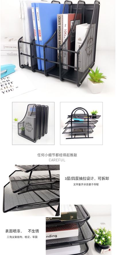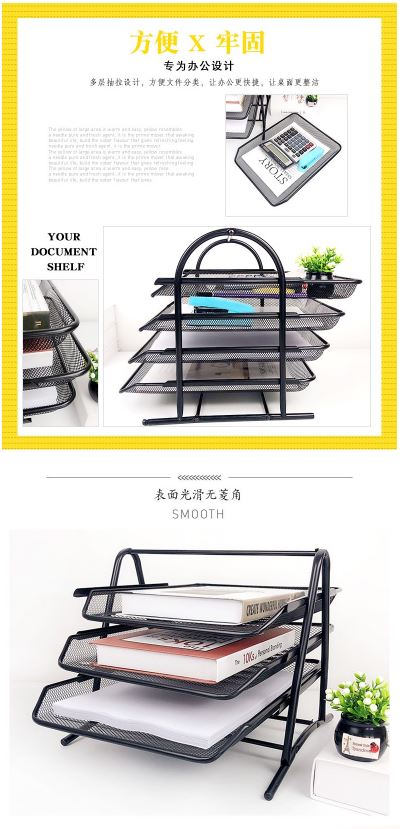 艾逊订货号:H1001731 原始型号:绿文文件架三四层文件盘文件栏金属铁丝网状文件栏筐资料架多层收纳框桌面文件座铁质办公用品 三层文件盘 品牌:绿文 品牌所属地:中国