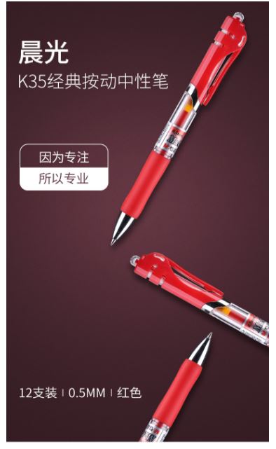 晨光的文件管理用品晨光(M&G)K35经典0.5mm按动子弹头中性笔红色