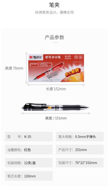 艾逊订货号:H1001770 原始型号:晨光(M&G)K35经典0.5mm按动子弹头中性笔 红色 品牌:晨光 品牌所属地:中国