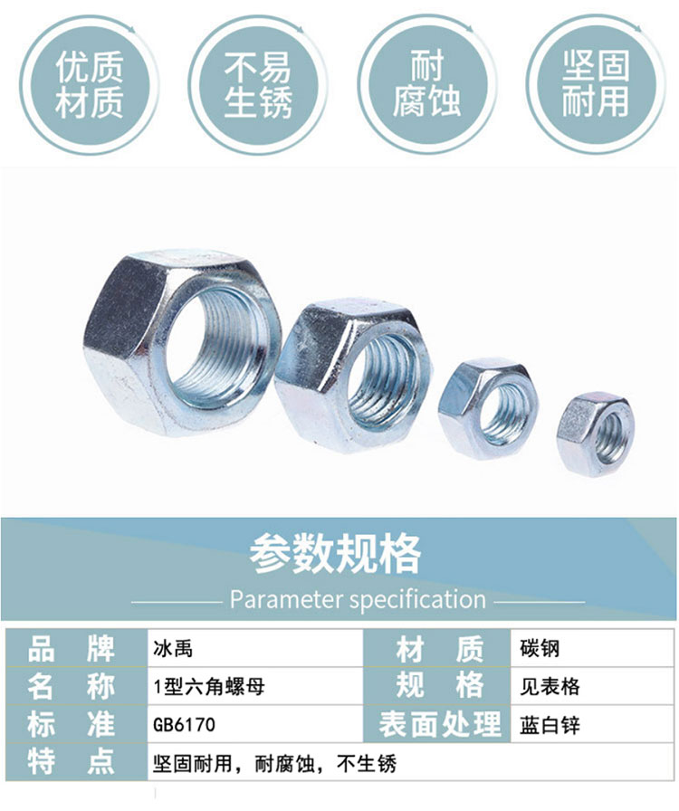 ICEY/冰禹的六角螺母冰禹高强六角螺母M228级GB/T6170;45#