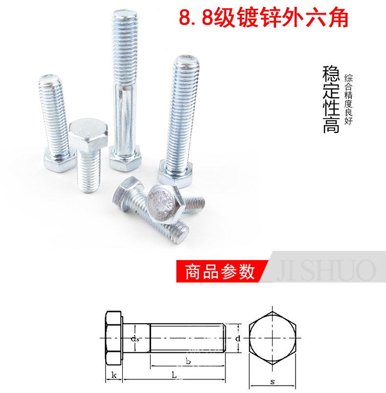 艾逊订货号:G1001808 原始型号:冀硕六角头光螺栓-14*40镀锌8.8级 品牌:冀硕 品牌所属地:中国