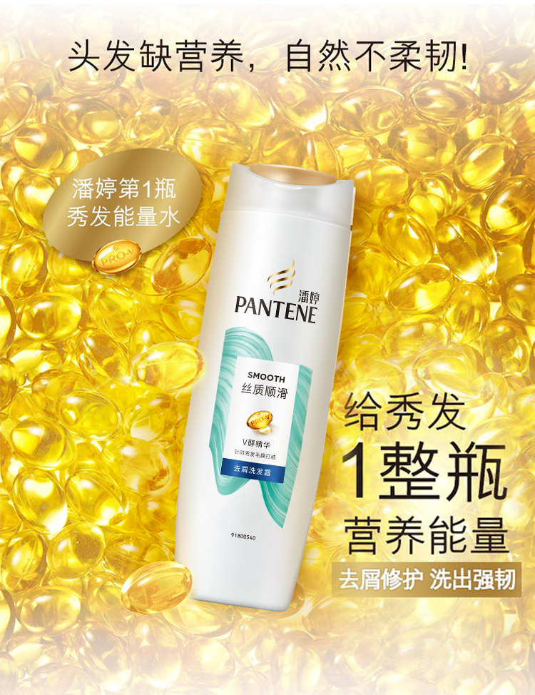 潘婷丝质顺滑去屑洗发露,750ml 单位:瓶
