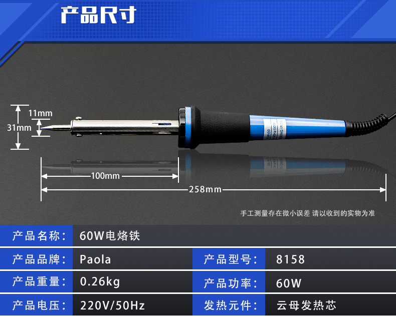 艾逊订货号:D1004149 原始型号:PAOLA/保拉 电烙铁套装 8158 60W 1套 品牌:Paola/保拉 品牌所属地:中国
