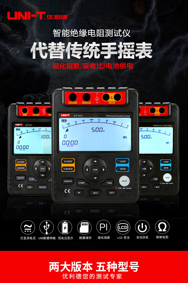 UNI-T/优利德的绝缘电阻测量仪优利德/UNI-T绝缘电阻测试仪,UT513