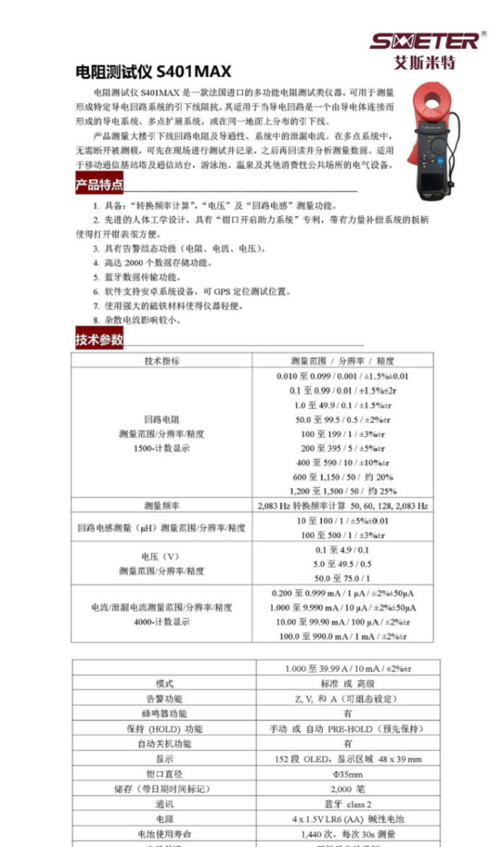 SMETER/艾斯米特的接地电阻测试仪艾斯米特/SMETER钳形接地电阻测试仪,S401MAX