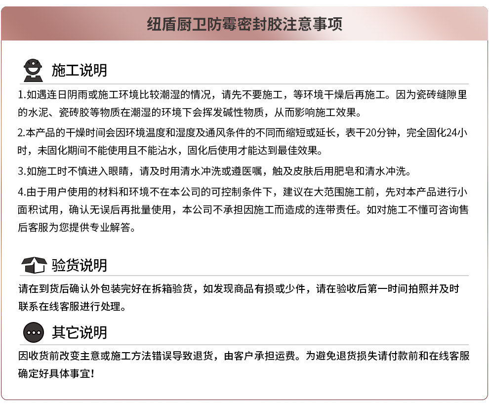 艾逊订货号:H1002041 原始型号:纽盾 玻璃胶防霉玻璃胶通用型 填缝密封胶防水胶水耐候硅胶 收封边胶强力胶水 0级防霉密封胶 透明 1支 品牌:纽盾 品牌所属地:中国