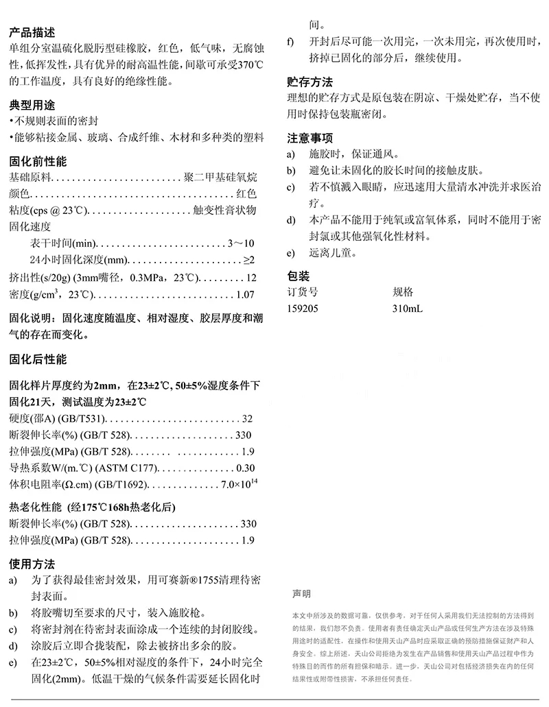 TONSAN/天山可赛新 天山胶硅橡胶平面密封剂 TS1587 310mL 1支 |