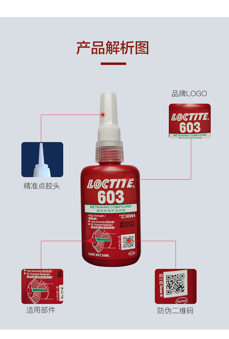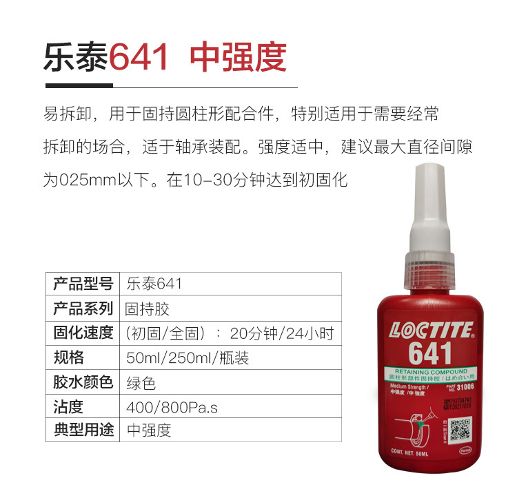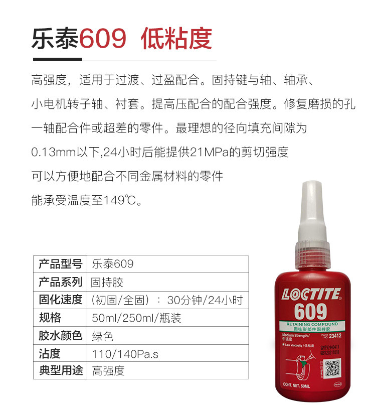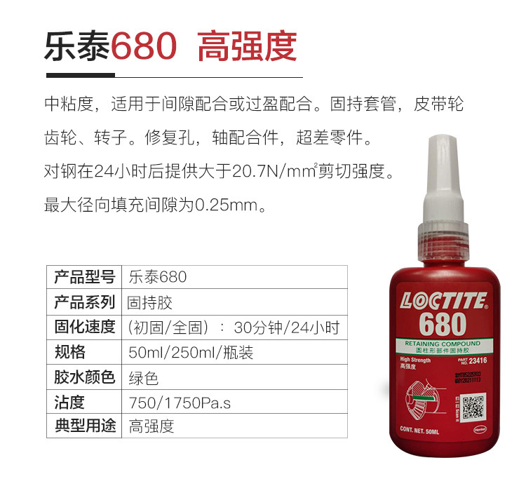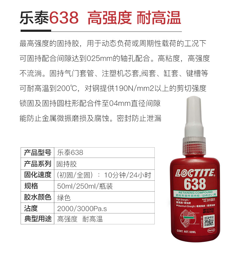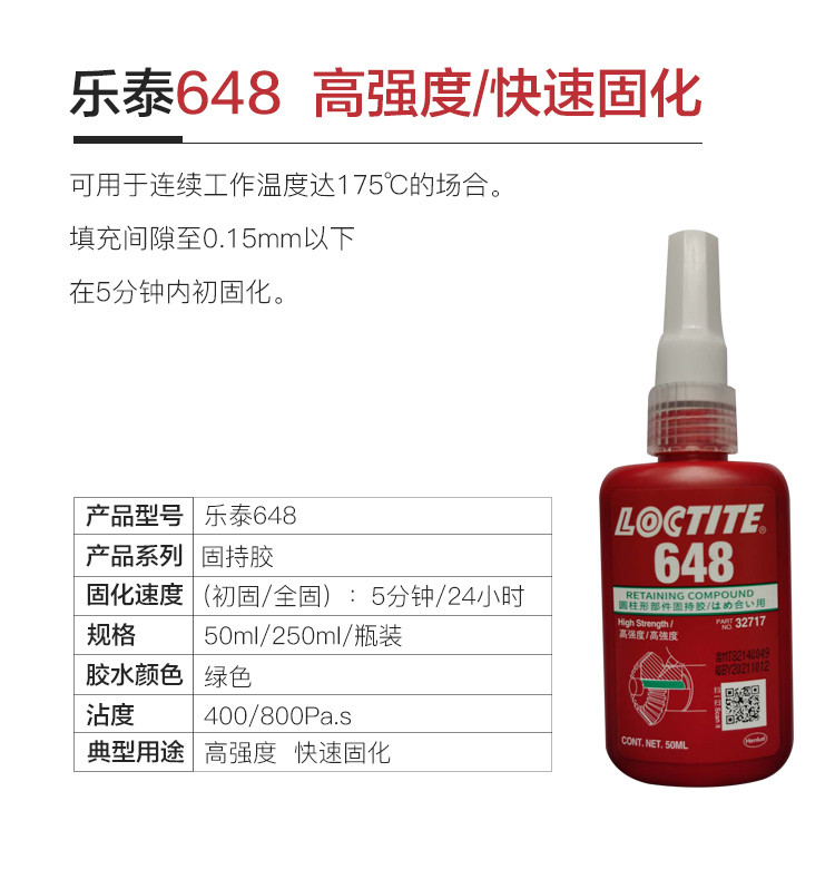 艾逊订货号:H1002055 原始型号:LOCTITE/乐泰 固持胶-648 250ml 1支 品牌:Loctite/乐泰 品牌所属地:中国