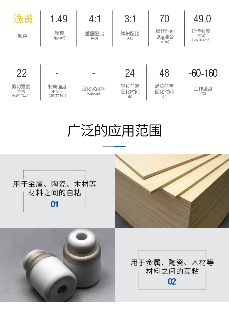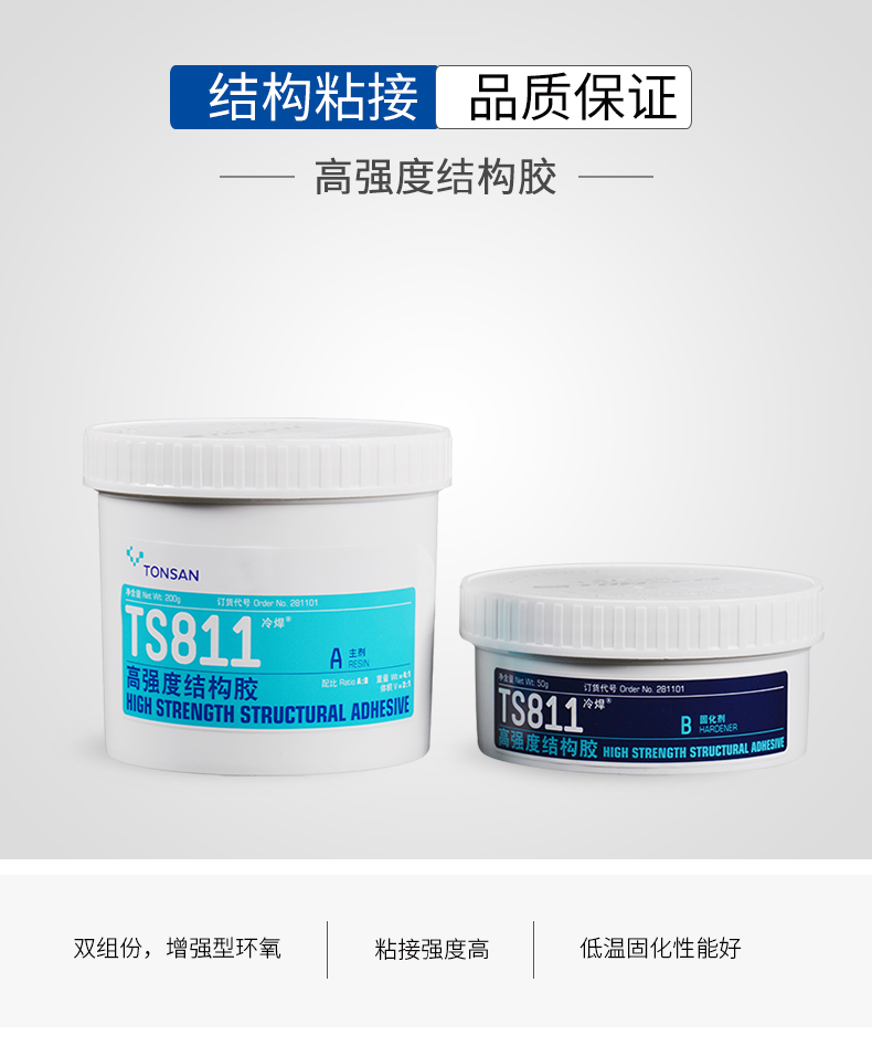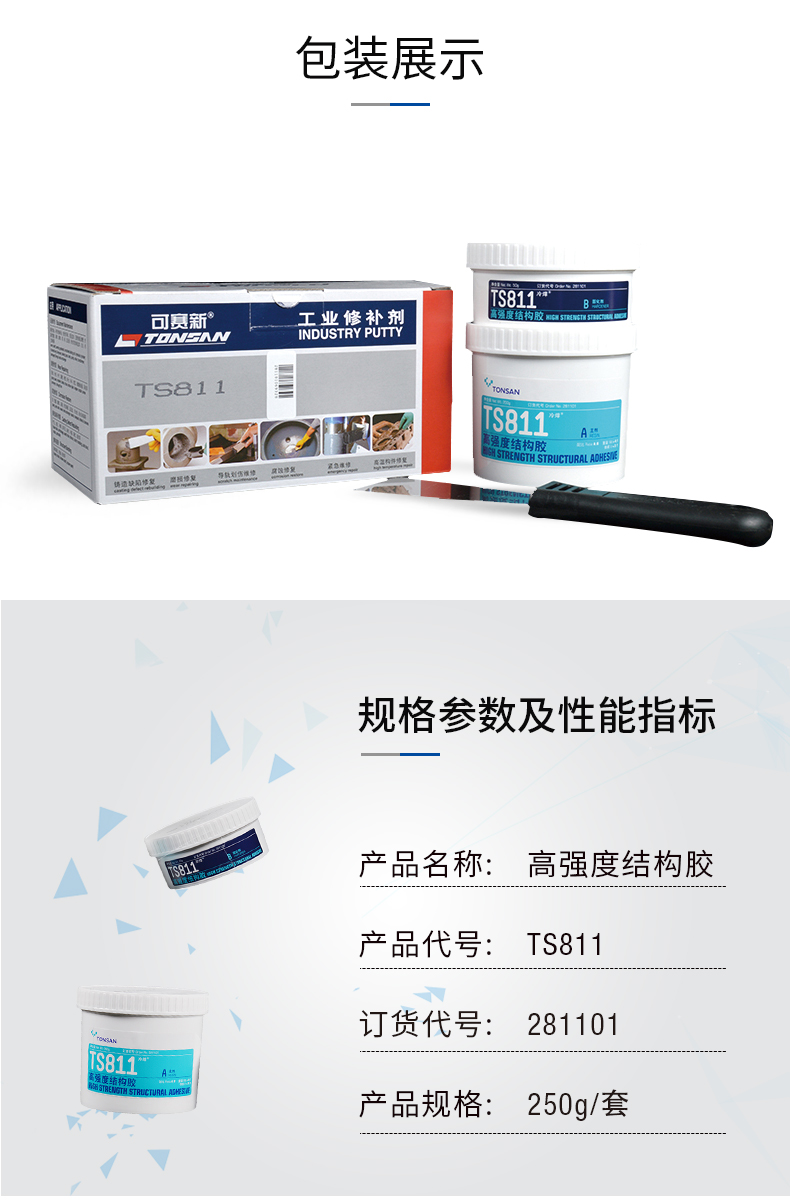 艾逊订货号:H1002130 原始型号:TONSAN/天山可赛新 天山胶高强度结构胶TS811 A+B胶 250g 1组 品牌:TONSAN/天山可赛新 品牌所属地:中国