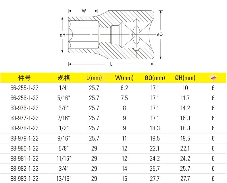 艾逊订货号:D1004155 原始型号:10MM系列英制6角标准套筒5/8" 88-980-1-22 品牌:STANLEY/史丹利 品牌所属地:中国