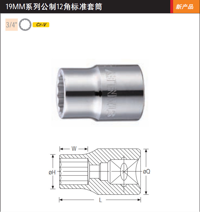 闪电客的套筒及配件19MM系列公制12角标准套筒44MMSTMT89644-8-23