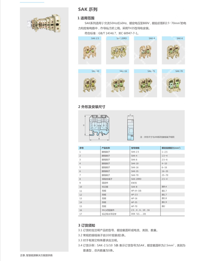 艾逊订货号:E1001911 原始型号:正泰 接线端子,SAK-2.5/10 品牌:CHINT/正泰 品牌所属地:中国