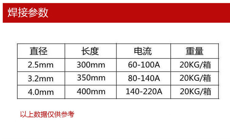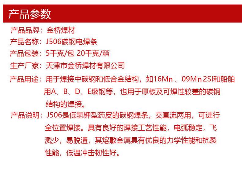 金桥低碳钢焊条,J422(E4303),Φ5.0,20公斤/箱 |