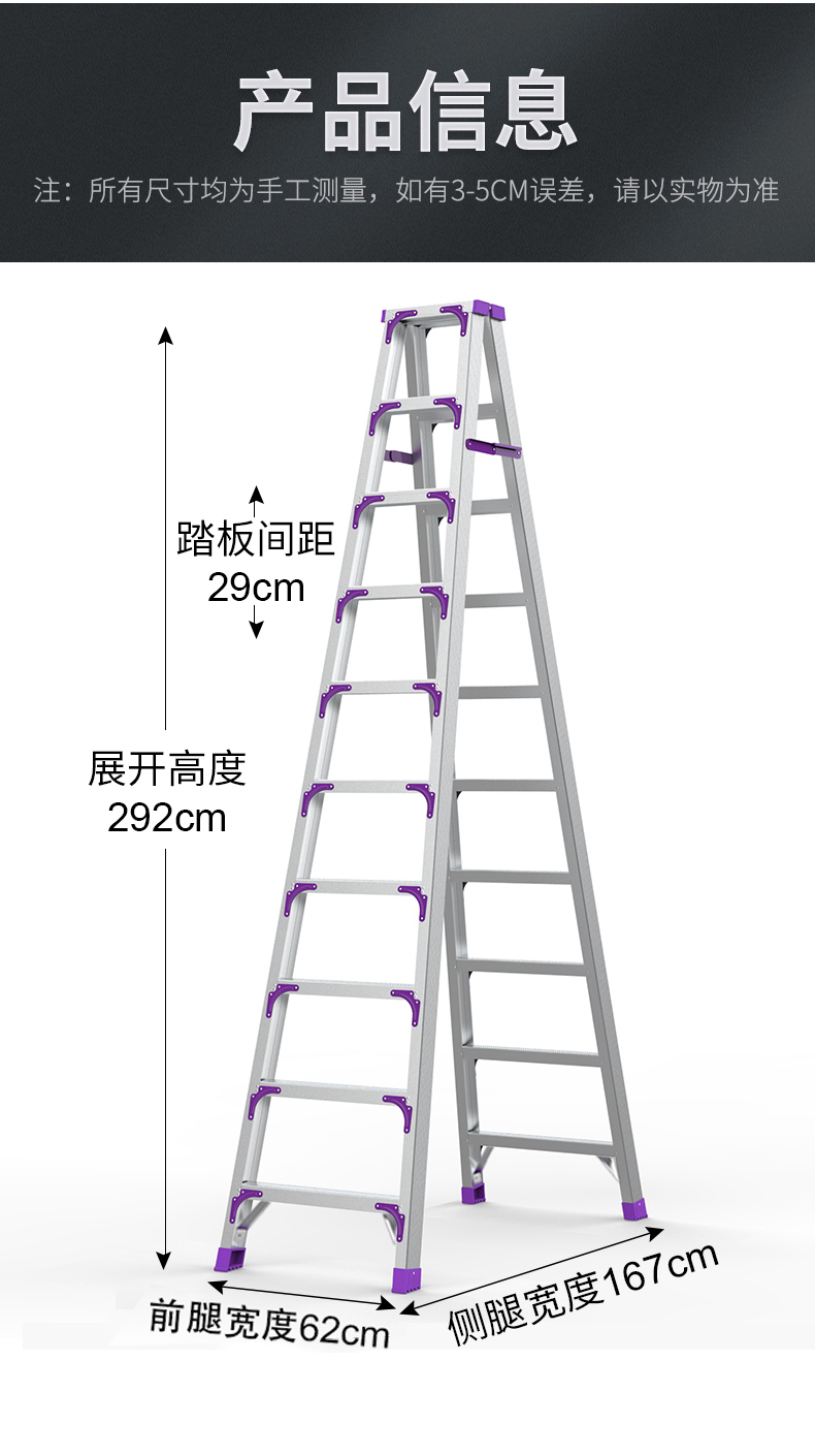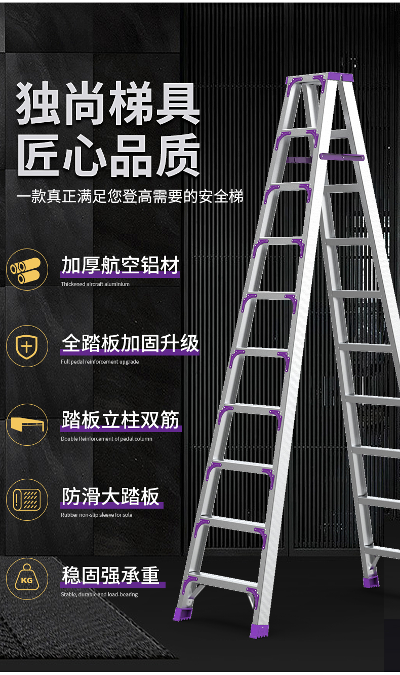 艾逊订货号:A1042668 原始型号:创硕 铝合金人字梯 【十步梯】加强加固款铝合金3.0米 品牌:创硕 品牌所属地:中国