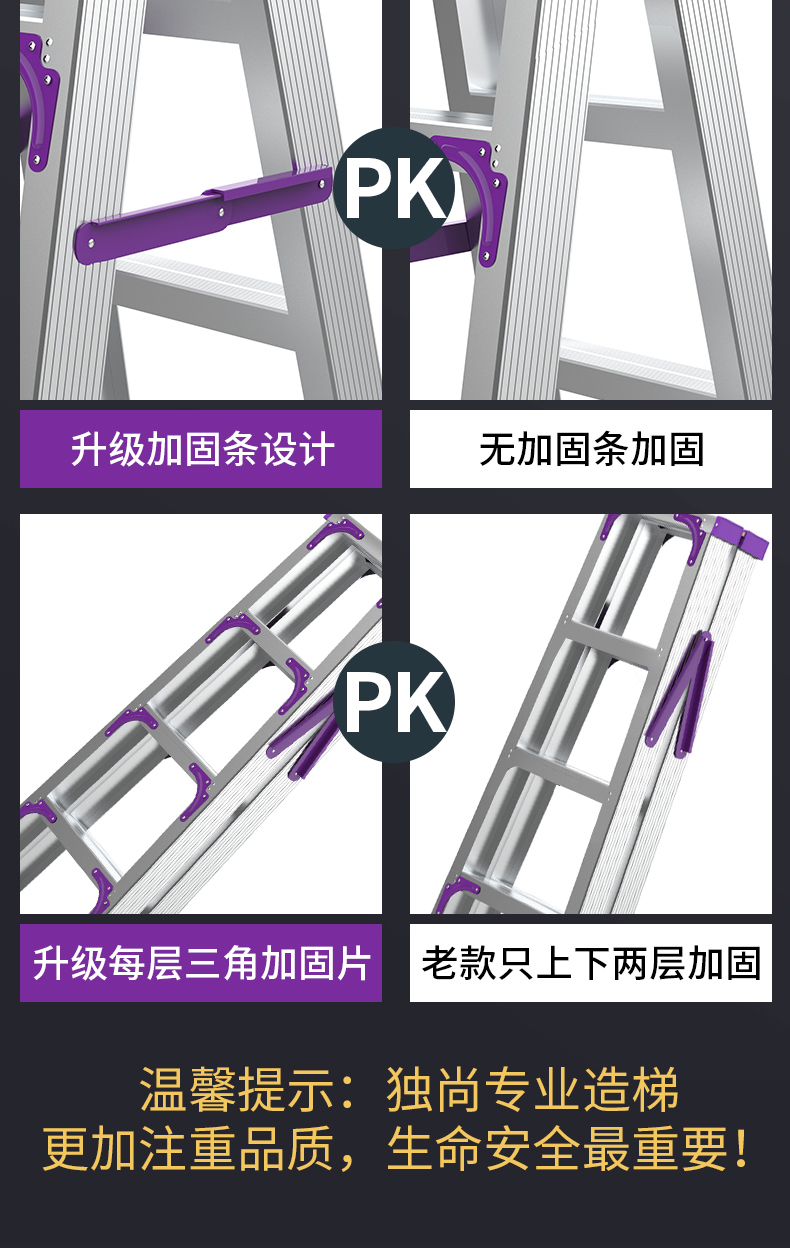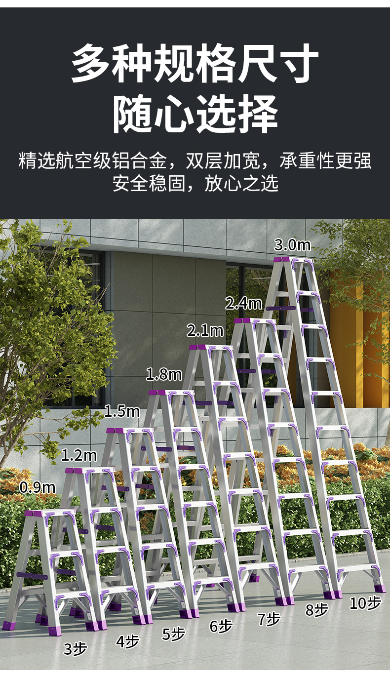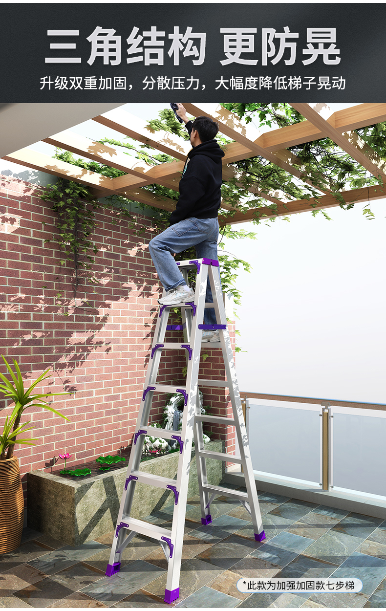 创硕的梯子创硕铝合金人字梯【十步梯】加强加固款铝合金3.0米