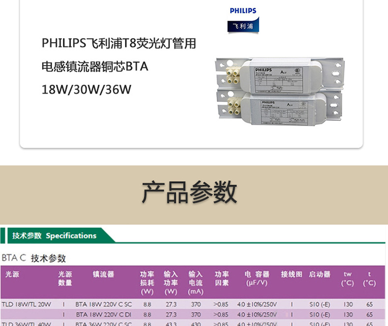 PHILIPS/飞利浦 T8电子镇流器 EB-C 136 TLD 1*36W 1个 |