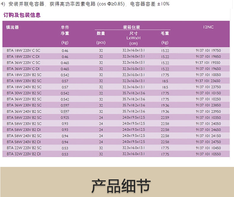 PHILIPS/飞利浦 T8电子镇流器 EB-C 236 TLD 2*36W 1个 |