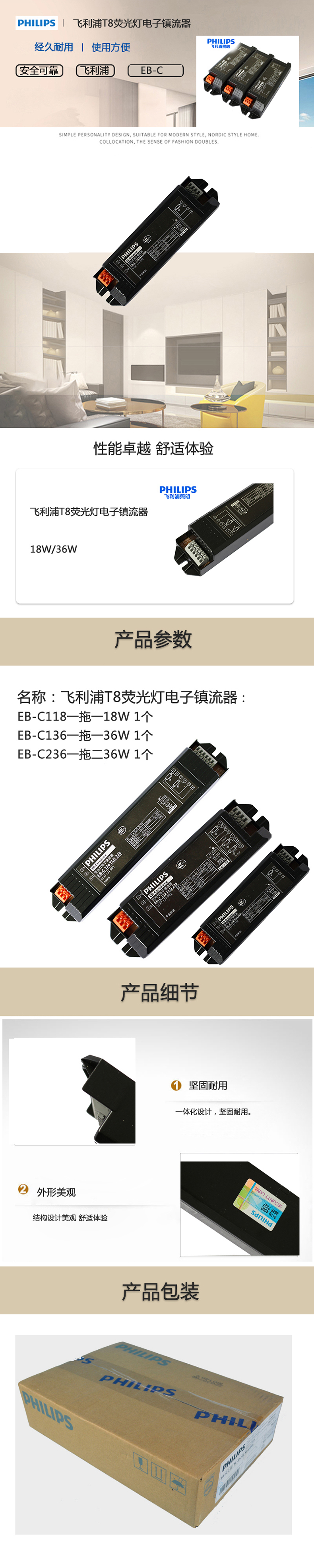 PHILIPS/飞利浦 T8电子镇流器 EB-C 136 TLD 1*36W 1个 |