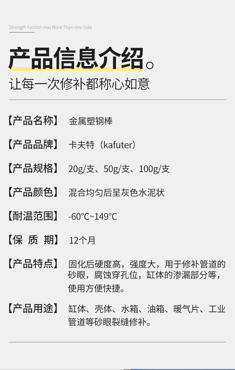kafuter/卡夫特的修补剂卡夫特金属塑钢棒,100G/支