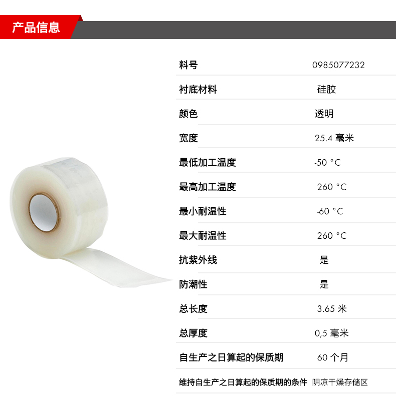 WURTH/伍尔特的修补剂伍尔特快速修复胶带,0985077232,HR,透明,0.5MMX25.4MMX3.65M/个