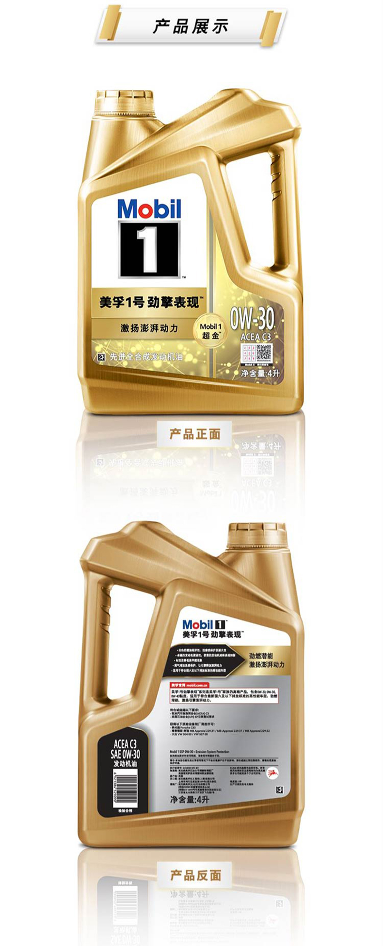 Mobil/美孚的汽油机油美孚全合成机油,金装美孚1号0W-30,SN级,4L/瓶