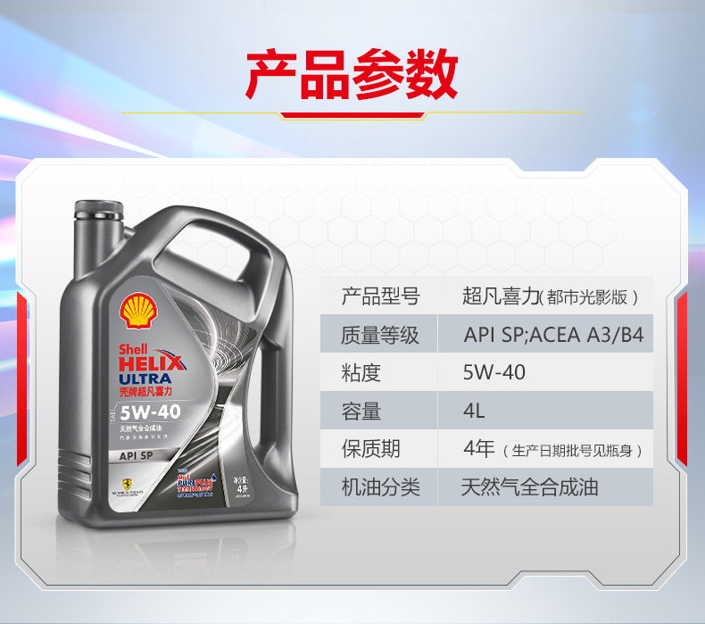 艾逊订货号:H1002968 原始型号:壳牌 HELIX-UL-5W40-4L 品牌:Shell/壳牌 品牌所属地:中国