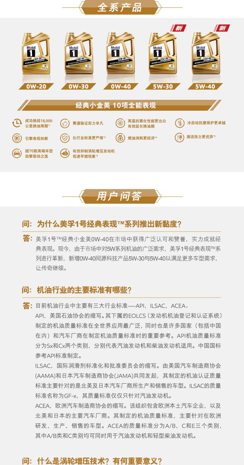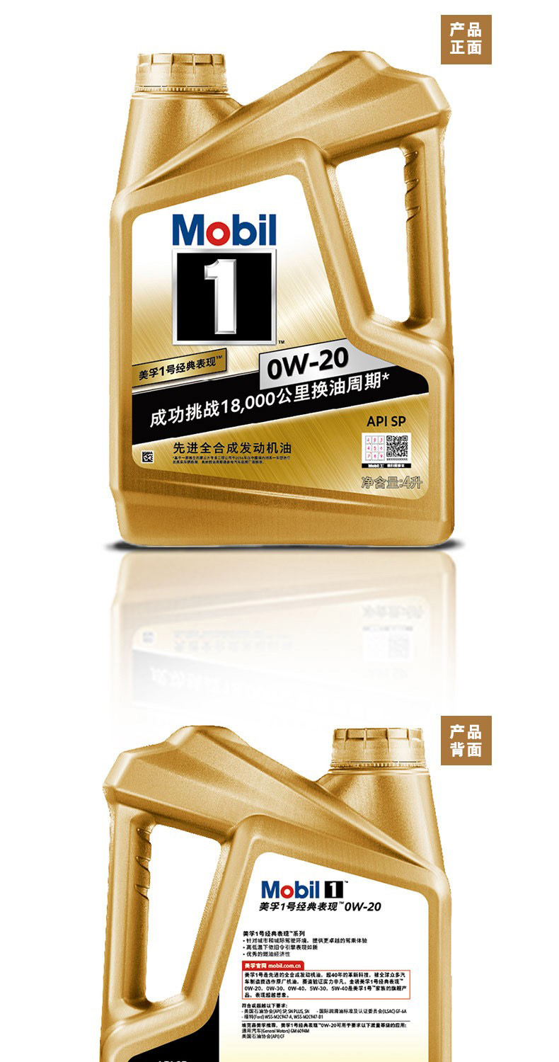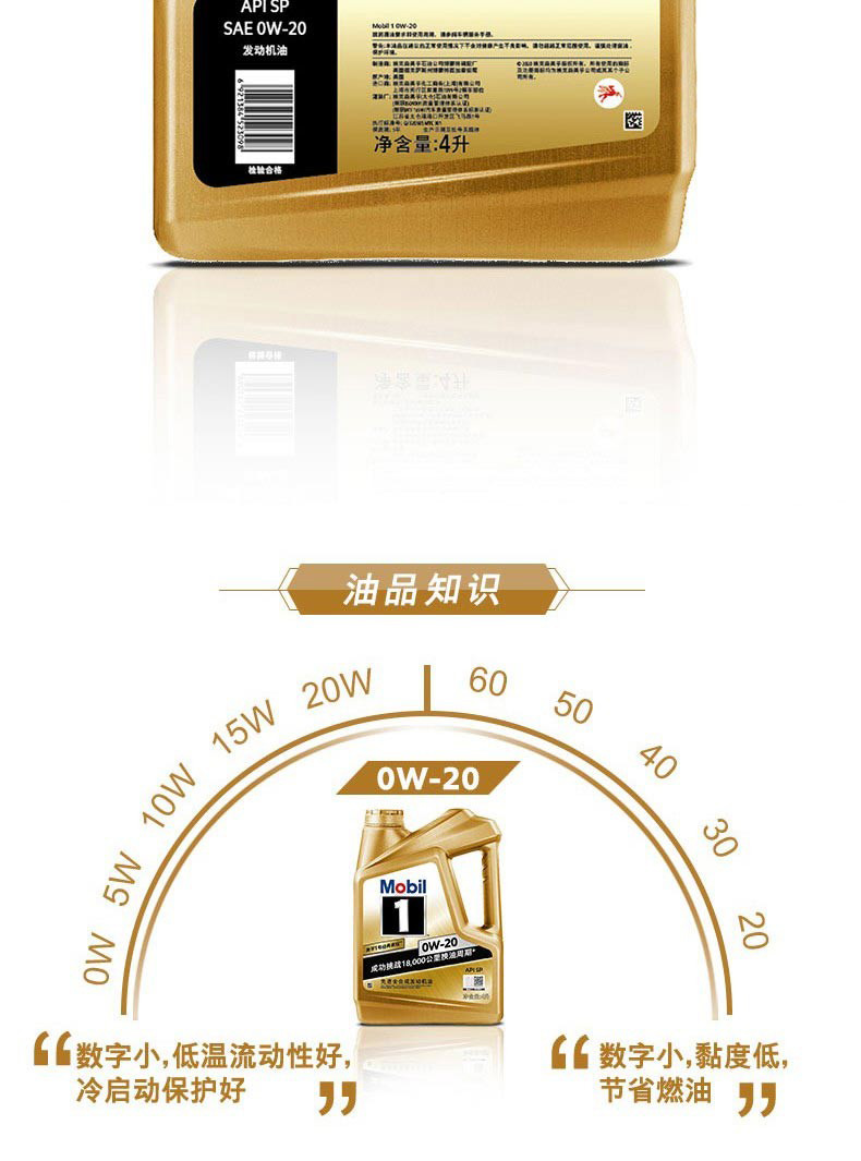 Mobil/美孚的汽油机油美孚全合成机油,金装美孚1号0W-20,SN级,4L/瓶