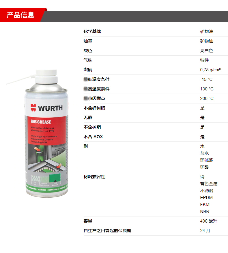 伍尔特 HHS润滑脂,08931065,500ML/瓶 |