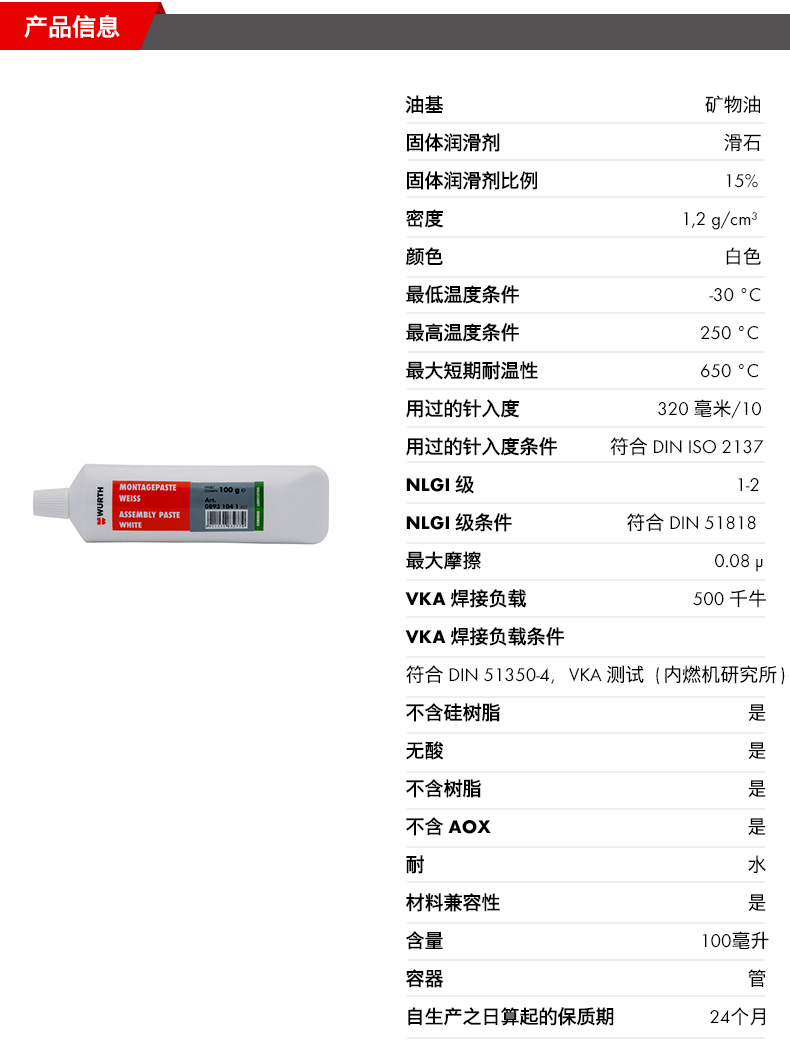 伍尔特 轴承润滑脂,WGF130,0893530,1KG/罐 |