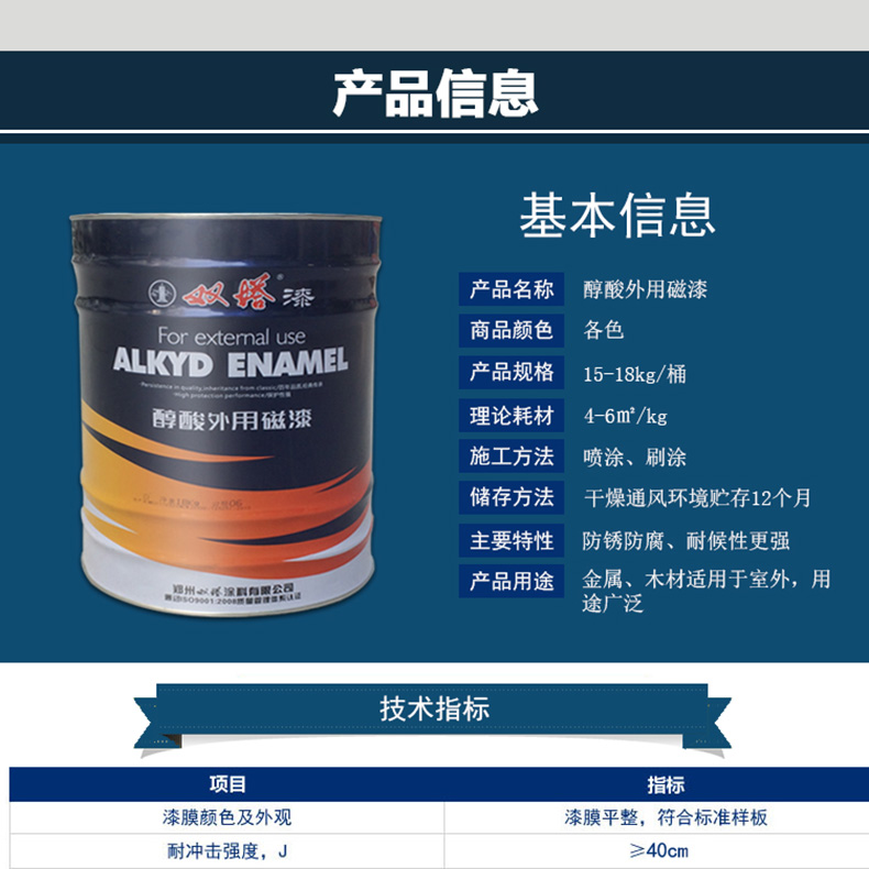 双塔 醇酸调和漆,中灰,国标色卡图号:GSB05-1426-2001 72 B02,18KG/桶 |