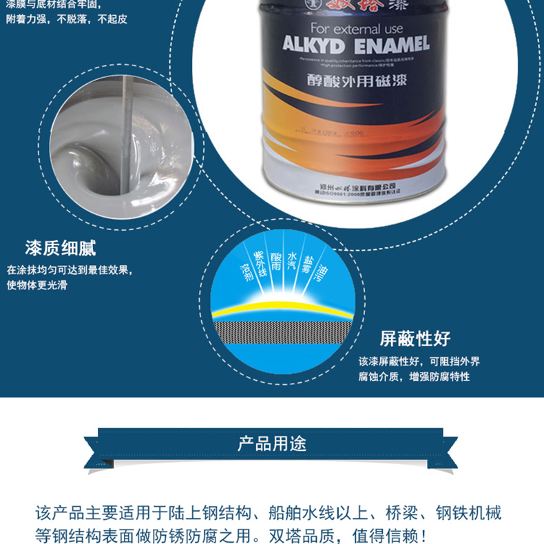 双塔 醇酸磁漆,中蓝,国标色卡图号:GSB05-1426-2001 3 PB03,3.5KG/桶 |
