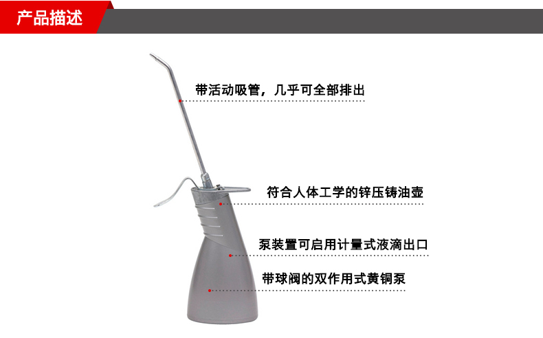艾逊订货号:H1007731 原始型号:伍尔特 金属油壶,0695555402,300ML/个 品牌:WURTH/伍尔特 品牌所属地:中国