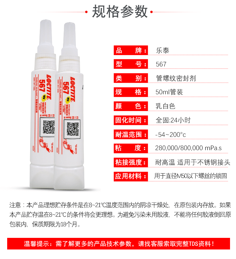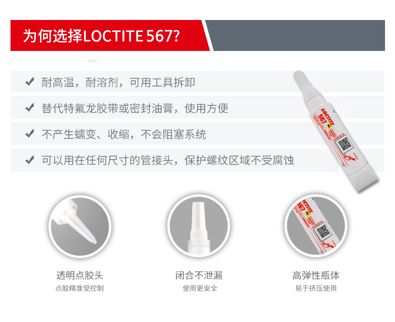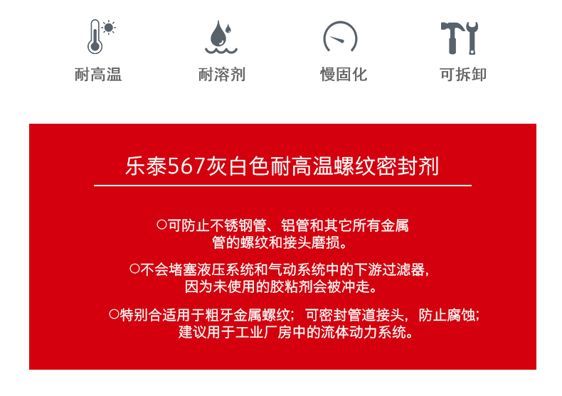 艾逊订货号:H1007735 原始型号:乐泰 Loctite 567/50ml 品牌:Loctite/乐泰 品牌所属地:中国
