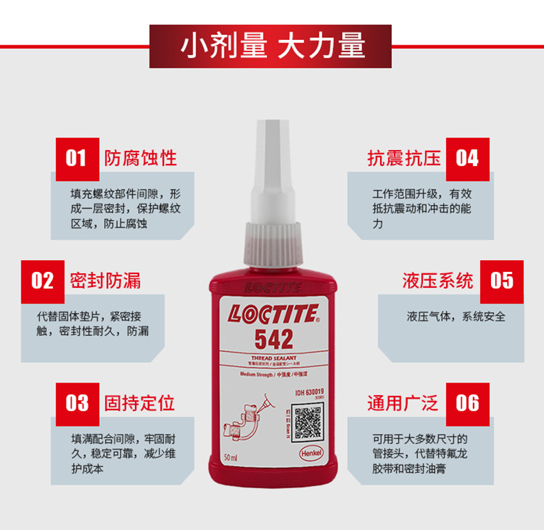 艾逊订货号:H1007773 原始型号:乐泰 Loctite 542/50ml 品牌:Loctite/乐泰 品牌所属地:中国
