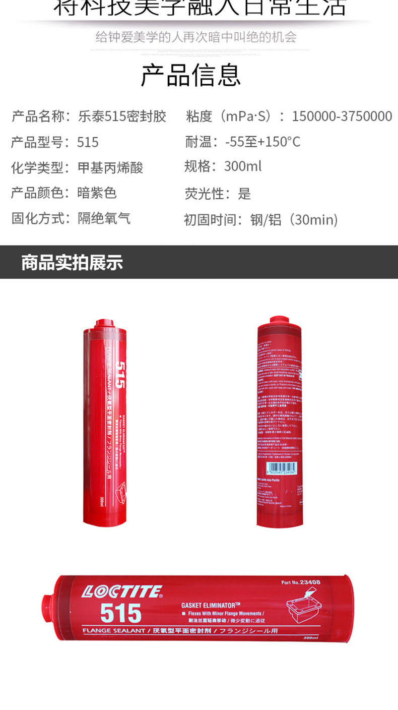 乐泰 平面 密封胶,Loctite 518 厌氧型,300ml |